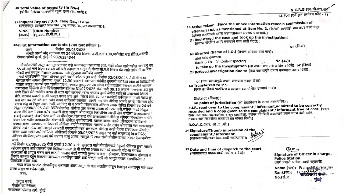 Patnayak, who is a CA student and an animal lover, received the video of the gruesome act on a Whatsapp group of animal lovers, which she was also a part of. On the basis of the details received along with the video, she searched for the said dog along with her animal lover friend and found it in an injured condition in Star Galli. According to the FIR, the dog was diagnosed to have suffered injuries in its spinal cord.