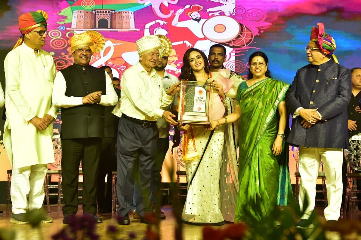 Recipients of the Pune Festival Award included actress Amruta Khanvilkar, veteran playwright Dr. Satish Alekar, cricketer Kedar Jadhav, Maharashtra Kesari title winner Prithviraj Mohol, farmer and agritourism promoter Dnyandev Kamthe of Mauli Krishi Paryatan Kendra, and entrepreneur Supriya Badwe.