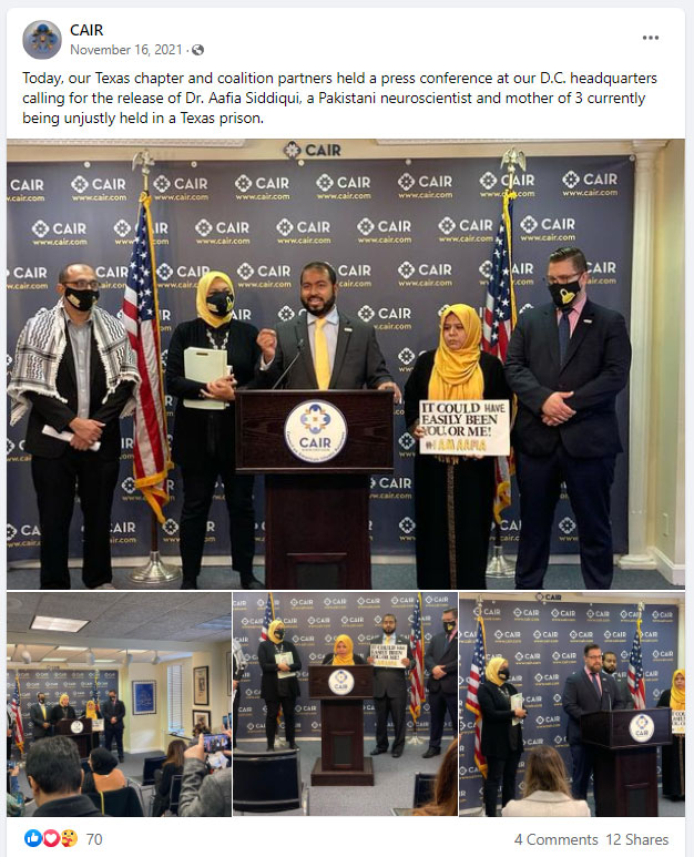 At present, Aafia Movement employs social media, interviews, seminars, documentary screenings, awareness campaigns and tours, fundraisers and other activities to advocate for Aafia Siddiqui’s release from prison. Amusingly, Islamic terror groups, Islamist advocacy groups, Islamist apologist ‘human rights’ groups and jihadi sympathisers in general, have been calling Aafia Siddiqui’s incarceration a ‘miscarriage’ and ‘travesty’ of justice, peddling Muslim victimhood and Islamophobia narratives while Aafia’s family denies her links to al-Qaeda or any Islamic terror group altogether.