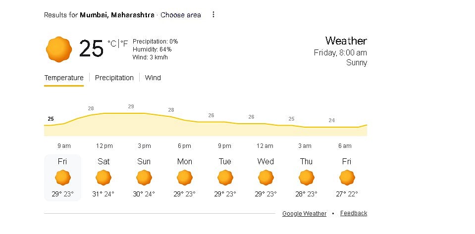 Mumbai woke up to a hazy sky on Friday morning, as air quality continued to remain in the severe category across the city. At 8 am, the temperature was recorded at 25 degrees Celsius, with no rainfall and light winds moving at 3 to 5 km per hour.