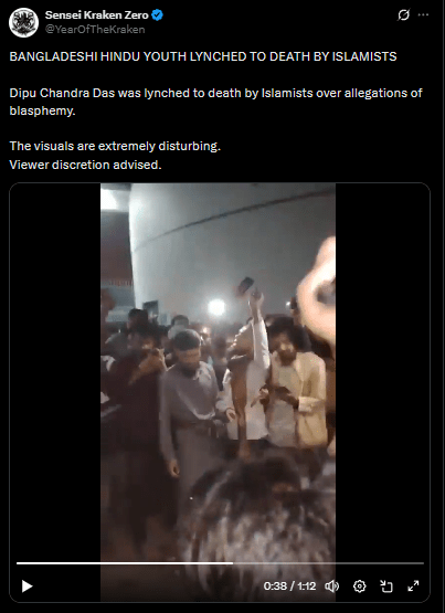 The videos of the incident (video discretion advised) in which the slogans of “Nare Takbir Allahu Akbar” can be heard have become viral on social media where the deranged crowd is seen murdering Dipu and recording the heinous act on mobile phones.