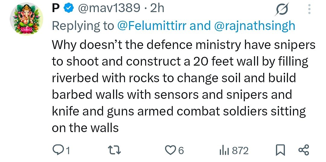 The video sparked outrage on social media, with users demanding stringent action against the men pelting stones. One user questioned, “Why doesn’t the defence ministry have snipers to shoot and construct a 20 feet wall by filling riverbed with rocks to change soil and build barbed walls with sensors and snipers and knife and guns armed combat soldiers sitting on the walls.”