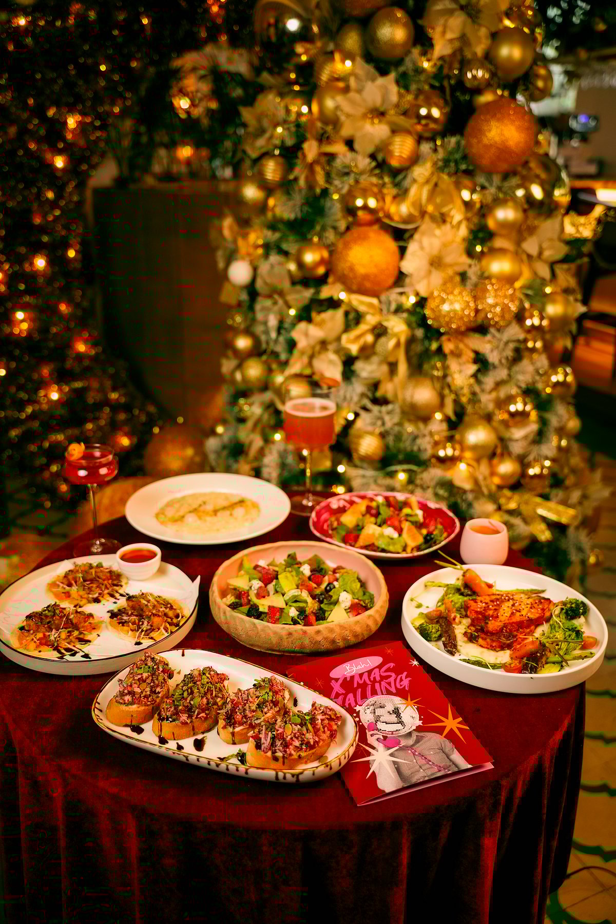 Blah! keeps Christmas upbeat and buzzy with festive decor and a drinks-led menu. The food leans into comforting flavours; think berry salads, crostini topped with strawberries and olives, and creamy risotto. But the stars? The cocktails. Snowflake Sparkle, Spiced Apple Cider Old Fashioned, Gingerbread Cookie and Cranberry Paloma bring holiday flavours to life, perfect for long, laughter-filled nights with friends and family.
