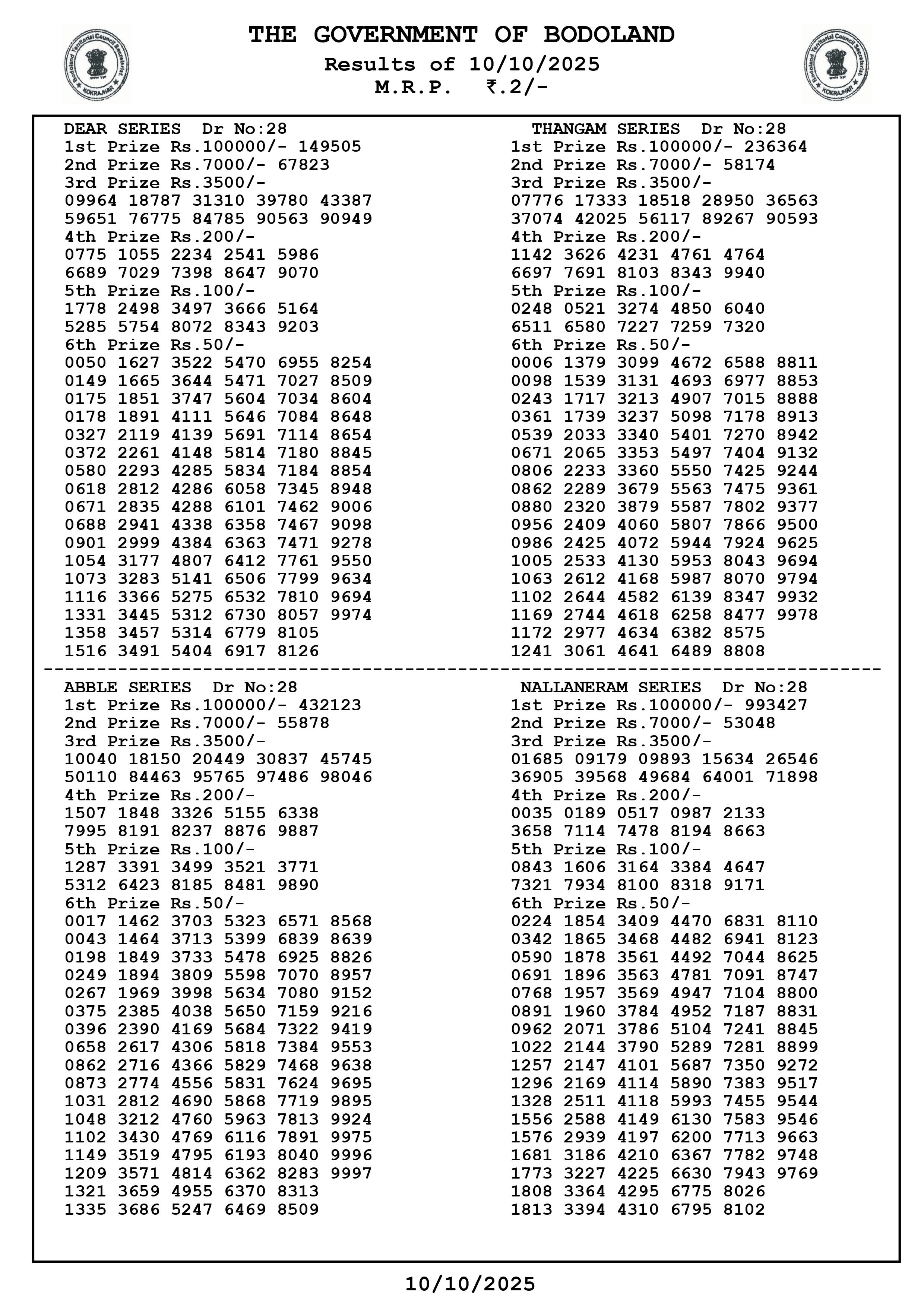 Bodoland Lottery Result Today LIVE Updates for October 10, 2025: The Bodoland Lottery Department will declare the Bodoland Lottery Result today, October 10, 2025, at 3:00 PM. Usually, the Bodoland Lottery is played three times a day. Several people buy Bodoland Lottery tickets.