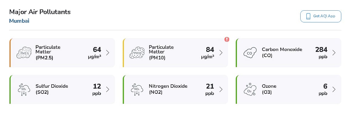 PM2.5 levels were measured at 64 micrograms per cubic metre, while PM10 stood at 84 micrograms per cubic metre, both significantly above safe limits. While the overall AQI was marginally lower than the Maharashtra average, experts say prolonged exposure can still impact vulnerable groups, including children, the elderly and those with respiratory conditions.