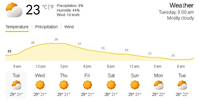The forecast for the coming week suggests stable weather with no major rainfall activity. Daytime temperatures are expected to rise to around 29 degrees Celsius, while nights will remain relatively cooler at 21 to 22 degrees Celsius.