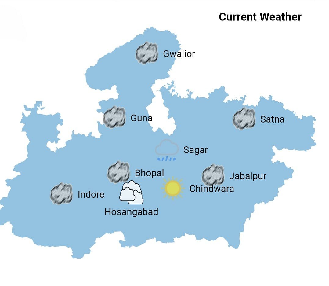 Bhopal experienced a spell of rain in the morning hours on Thursday, leading to a sharp drop in day temperature. Cloudy weather persisted throughout the day. Rain and hail hit many districts in the state over the last 24 hours.