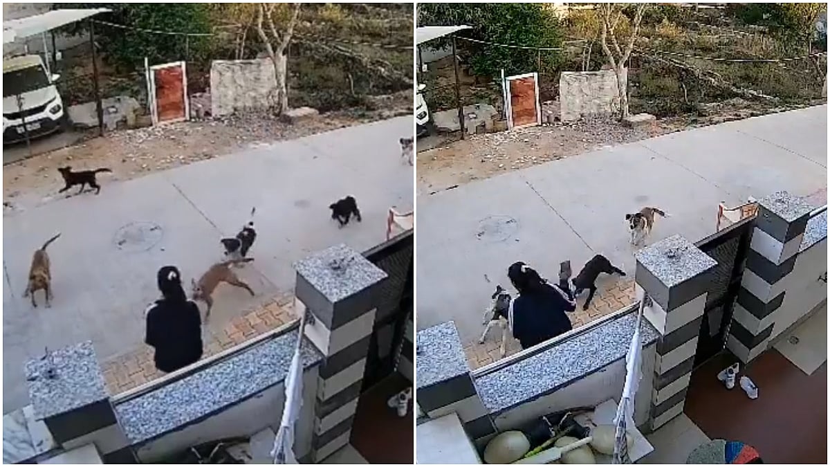College Student Screams For Help, Falls To Ground As Stray Dogs Attack Her In Rajasthan’s Alwar; Rescued (Screengrab) | X
