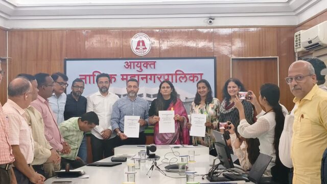 Nashik’s rapid growth has increased the inflow of residents and visitors, highlighting the need for planned development. Municipal Commissioner Manisha Khatri, Sustain and Save director Pranati Shroff, CREDAI Nashik Metro vice president Uday Ghuge, honorary secretary Tushar Sanklecha, former president Krunal Patil, committee members, and CREDAI Youth Wing coordinator Aditya Bhatamberekar were present at the signing.