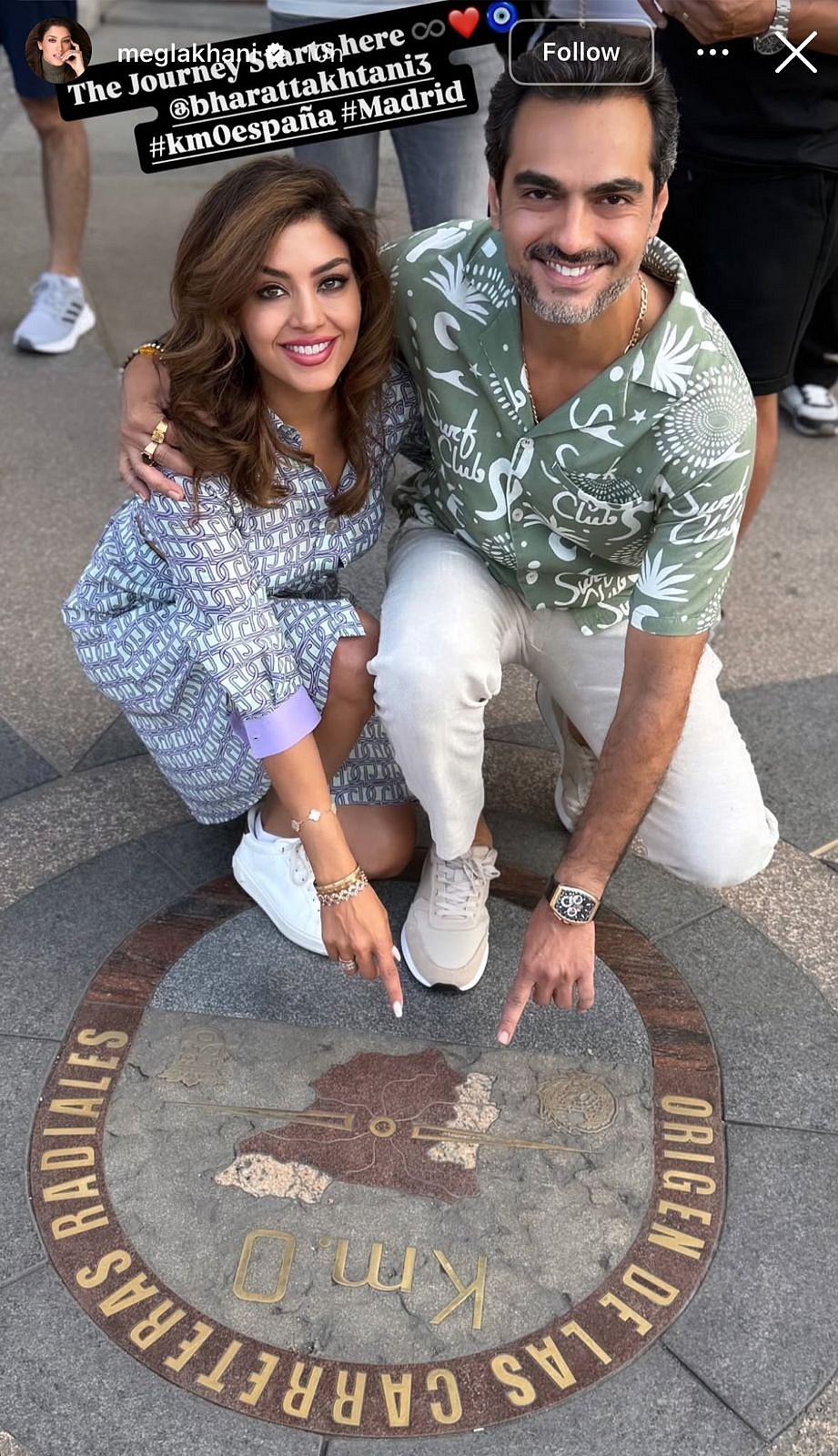 Meghna also shared a photo with Bharat from their vacation in Spain, where the duo, with arms around each other, happily posed near the Origen de las Carreteras Radiales plaque in Madrid. Captioning the post, Meghna wrote, “The journey starts here” (with infinity, heart, and evil eye amulet emojis), seemingly confirming their relationship.