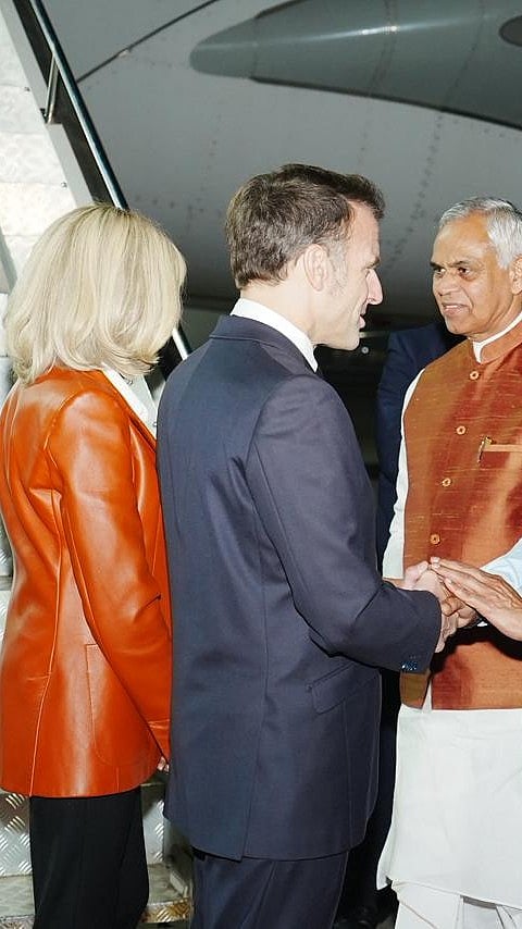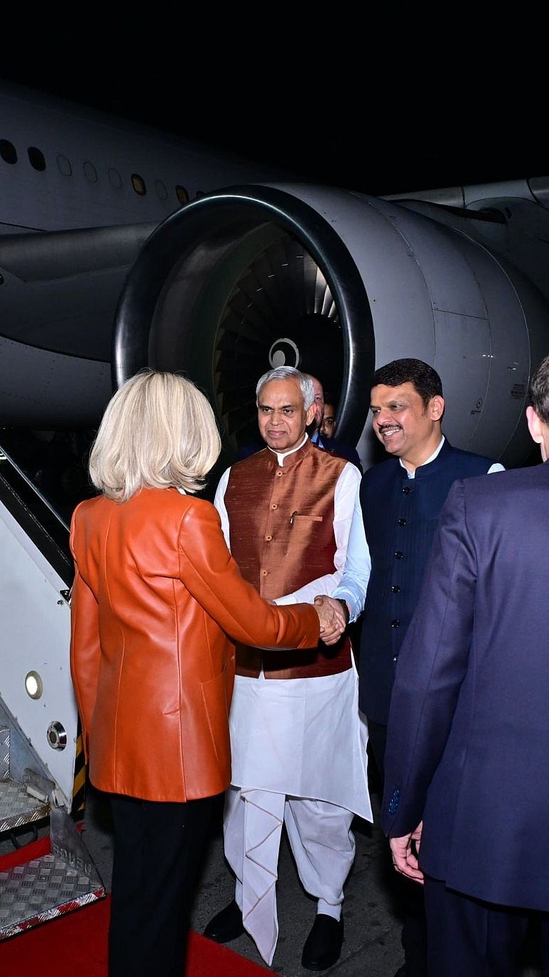 French President Emmanuel Macron landed in Mumbai for a three-day visit to India, where he was greeted at the airport by Maharashtra Chief Minister Devendra FadnavisSharing pictures from Macron’s arrival, Fadnavis wrote on X, “Bienvenue à Mumbai! A very warm welcome to the President of France, H.E. Emmanuel Macron and First Lady Brigitte Macron as they arrive in Mumbai!”Macron, who has come to the country for India–France discussion, arrived in a chic and sophisticated navy blue suitHIs wife, Brigitte Macron, looked equally powerful in a bold red blazerShe paired the jacket with a classic white shirt, black trousers and sleek boots Her signature blonde bob and subtle makeup rounded off her arrival glam