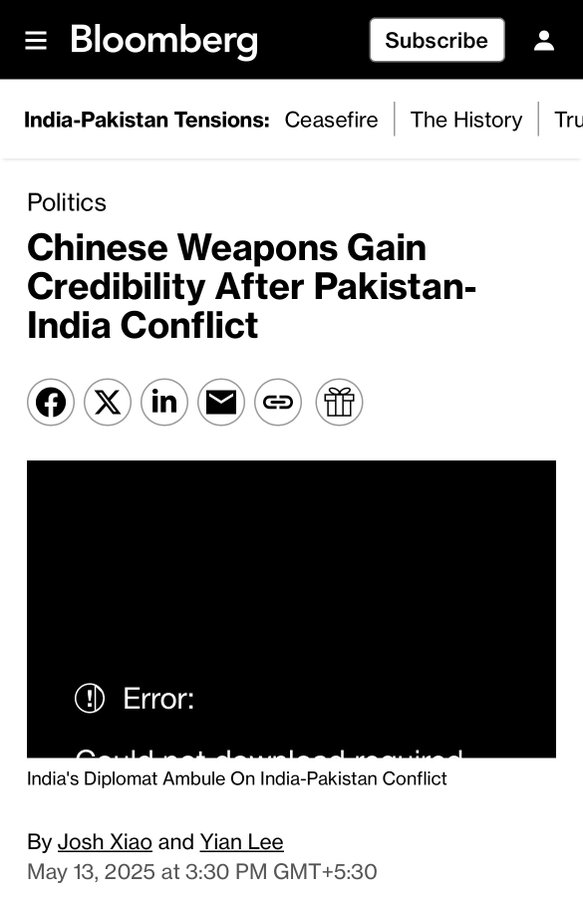 In this vein, Bloomberg published an article on 13th May, headlined: “Chinese Weapons Gain Credibility After Pakistan-India Conflict”, wherein the propaganda outlet amplified Pakistan’s claims of shooting down five Indian fighter jets including Rafale. It, however, failed to provide any evidence for these audacious claims.
