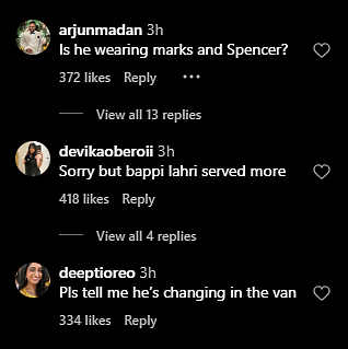 Others compared the look to iconic pop culture figures, with one even writing, “Sorry but Bappi Lahiri served more,” and another questioning, “Is he wearing Marks and Spencer?”