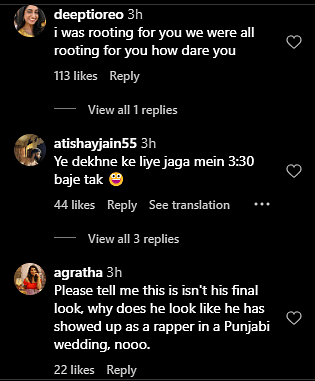 Another commented, “Sabyasachi, you did him bad,” while one wrote, “It is giving a Punjabi guy at a West Delhi wedding.”