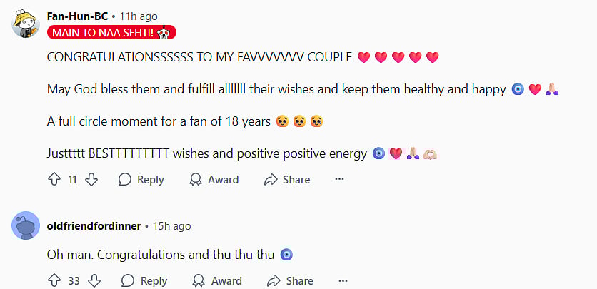 Another Reddit user wrote, “My inner 14 year old fan is screaming. Congratulations (sic).” One more fan commented, “For a moment I thought it was some throwback to pregnant Kareena. But wohooo!! Congratulations (sic).” Check out the comments below…