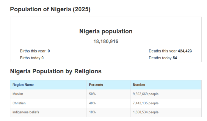 21,409 people were killed in 11,862 attacks against civilians in Nigeria between January 2020 and September 2025, based on data gathered by the US based Armed Conflict Location and Event Data (ACLED) program. 317 people were killed in 385 of the incidents which were “targeted events against Christians where Christian identity of the victim was a reported factor.”