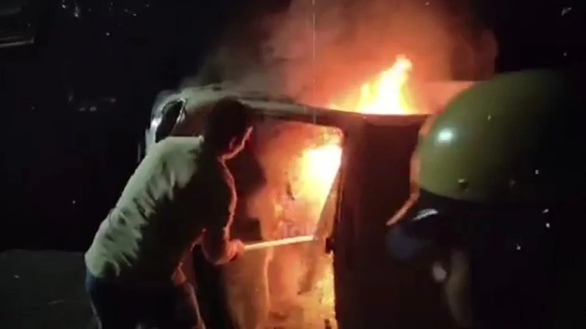 The event caused loss of property as at least two cars were torched, and several parked vehicles were vandalised.