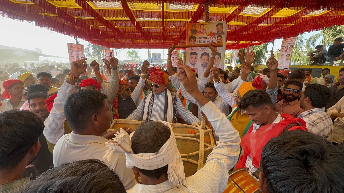 Thousands of party workers took out a grand procession, filling the town with the colors of Bhagoriya and Holi. The beats of dhol and mandal echoed as tribals in traditional attire performed cultural dances. Patel himself played the drum, energising the gathering.