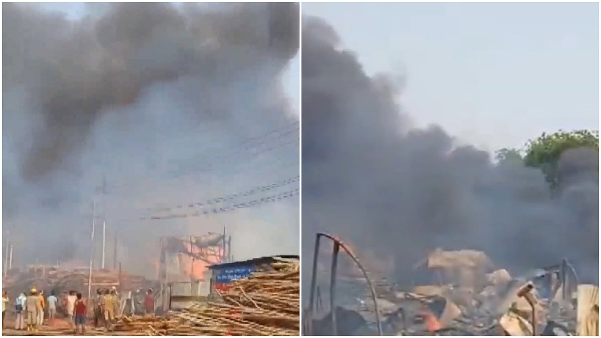 Massive Fire Breaks Out In Tent House Godown In Uttar Pradesh’s Prayagraj (VIDEO)