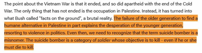 He equated the so-called Palestinian ‘freedom struggle’ with the Vietnam War and apartheid South Africa; Palestine remains occupied.