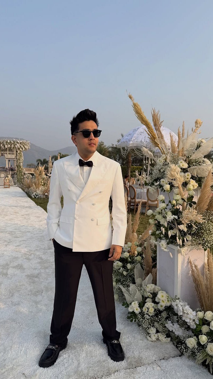 Kriti Sanon’s sister and actor Nupur Sanon officially tied the knot with singer Stebin Ben in a intimate Christian ceremony on January 10, in Udaipur Among the close friends on the guest list were stunning actresses Disha Patani and Mouni Roy, who graced the event in jaw-dropping blue gowns Casting director and producer Raghav Sharma also attended the dreamy wedding, sharing a series of stunning pictures on his Instagram For the white ceremony, he donned a dapper black and white tuxedo, comepleted with black shoes and sleek glasses The post also showcased the picture-perfect background and decor details of Fairmont Udaipur, where the wedding festivities took placeOne of the most heart-melting details was the white telephone stand with a photo wall featuring Nupur and Stebin’s unseen and romantic pictures The venue was decked up with white flowers with green and brown accents, making it a modern and breathtaking location
