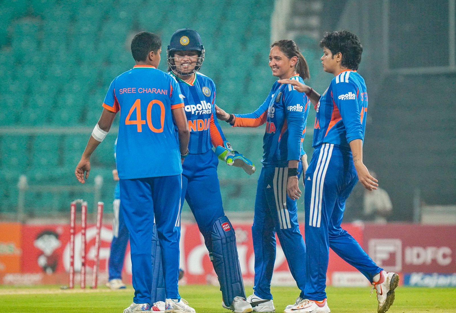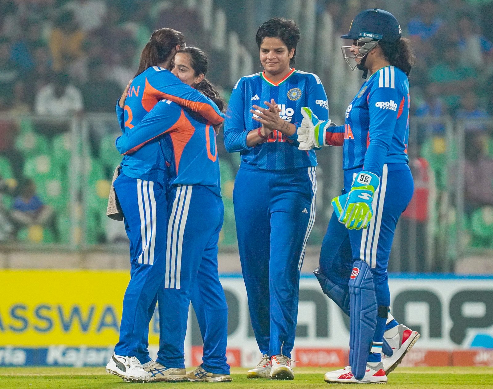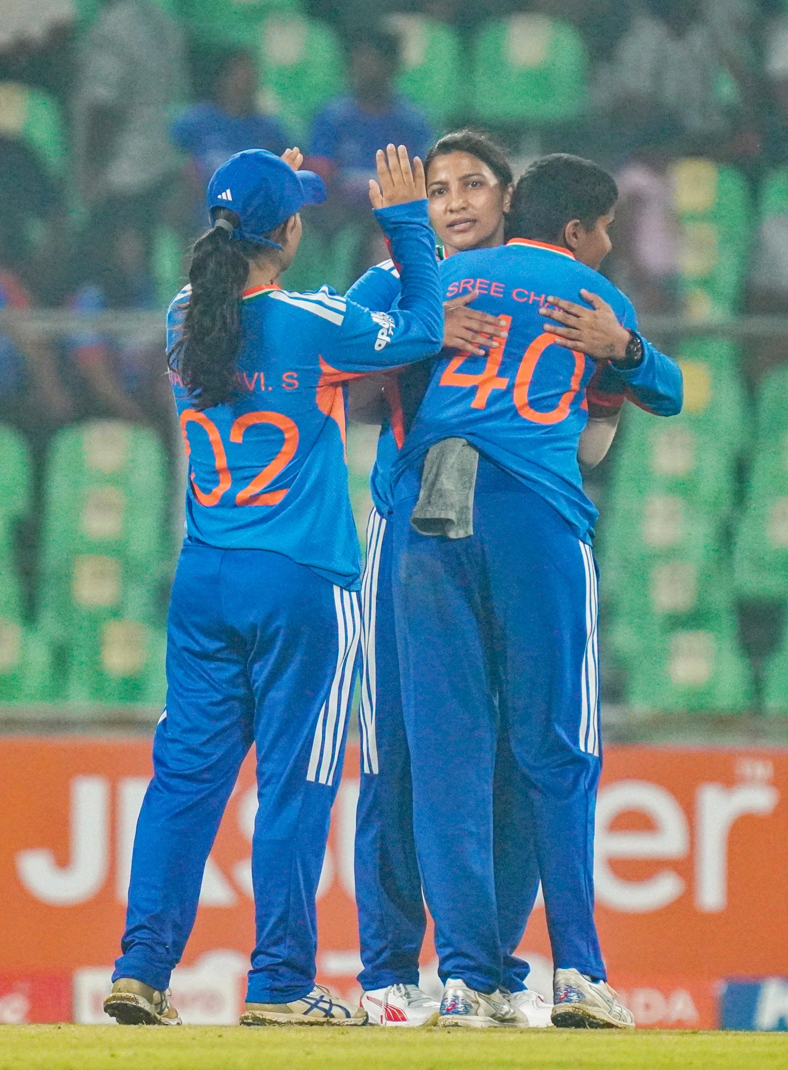 Thiruvananthapuram: India’s players celebrate a wicket during the fifth T20 International cricket match of a series between India Women and Sri Lanka Women, at Greenfield International Stadium, in Thiruvananthapuram, Kerala, Tuesday, Dec. 30, 2025. (PTI Photo)(PTI12_30_2025_000447B)Thiruvananthapuram: India’s players celebrate the wicket of Sri Lanka’s Hasini Perera during the fifth T20 International cricket match of a series between India Women and Sri Lanka Women, at Greenfield International Stadium, in Thiruvananthapuram, Kerala, Tuesday, Dec. 30, 2025. (PTI Photo)(PTI12_30_2025_000451B)Thiruvananthapuram: India’s players celebrate the wicket of Sri Lanka’s Hasini Perera during the fifth T20 International cricket match of a series between India Women and Sri Lanka Women, at Greenfield International Stadium, in Thiruvananthapuram, Kerala, Tuesday, Dec. 30, 2025. (PTI Photo)(PTI12_30_2025_000450A)Thiruvananthapuram: Sri Lanka’s Hasini Perera gets clean bowled during the fifth T20 International cricket match of a series between India Women and Sri Lanka Women, at Greenfield International Stadium, in Thiruvananthapuram, Kerala, Tuesday, Dec. 30, 2025. (PTI Photo)(PTI12_30_2025_000449B)Thiruvananthapuram: India’s players celebrate with the trophy after winning the T20 International cricket match series against Sri Lanka at the Greenfield International Stadium in Thiruvananthapuram, Kerala, Tuesday, Dec. 30, 2025. India Women won by 15 runs. (PTI Photo)(PTI12_30_2025_000455B)Thiruvananthapuram: India’s Deepti Sharma during the fifth T20 International cricket match of a series between India Women and Sri Lanka Women, at Greenfield International Stadium, in Thiruvananthapuram, Kerala, Tuesday, Dec. 30, 2025. (PTI Photo)(PTI12_30_2025_000435B)Thiruvananthapuram: India’s players celebrate a wicket during the fifth T20 International cricket match of a series between India Women and Sri Lanka Women, at Greenfield International Stadium, in Thiruvananthapuram, Kerala, Tuesday, Dec. 30, 2025. (PTI Photo)(PTI12_30_2025_000433A)Thiruvananthapuram: India’s captain Harmanpreet Kaur with teammates during the fifth T20 International cricket match of a series between India Women and Sri Lanka Women, at Greenfield International Stadium, in Thiruvananthapuram, Kerala, Tuesday, Dec. 30, 2025. (PTI Photo)(PTI12_30_2025_000428B)Thiruvananthapuram: India’s Richa plays a shot during the fifth T20 International cricket match of a series between India Women and Sri Lanka Women, at Greenfield International Stadium, in Thiruvananthapuram, Kerala, Tuesday, Dec. 30, 2025. (BCCI via PTI Photo)(PTI12_30_2025_000432A)