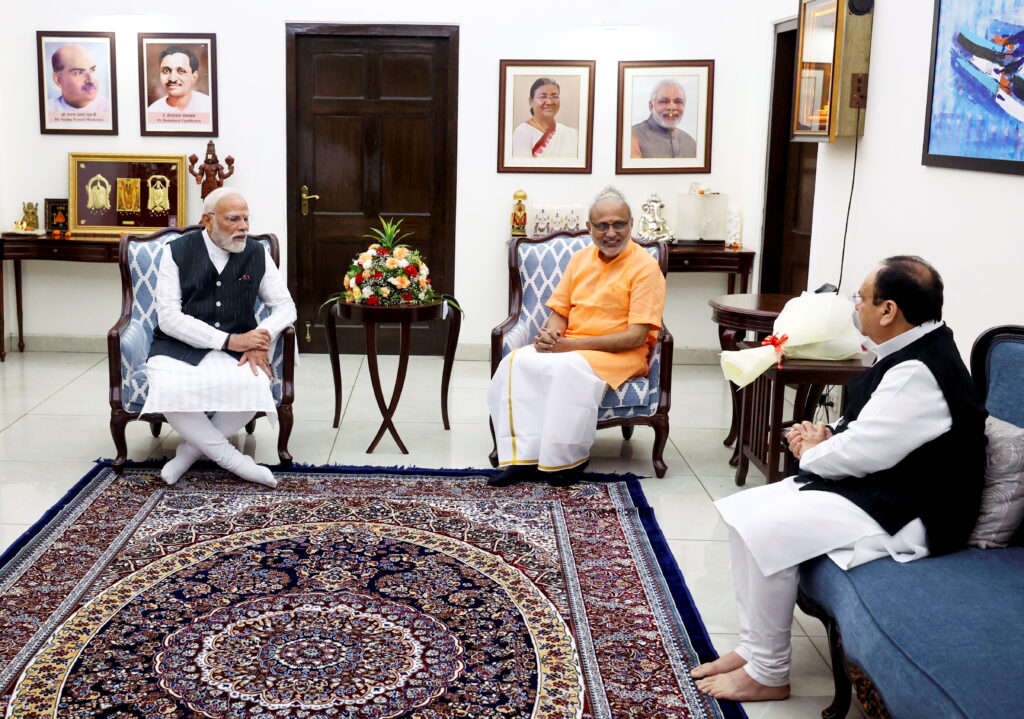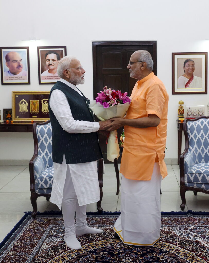 **EDS: THIRD PARTY IMAGE** In this image posted on Sept. 9, 2025, Prime Minister Narendra Modi and Union Health Minister JP Nadda during a meeting with Maharashtra Governor and Vice President-elect C P Radhakrishnan, in New Delhi. Radhakrishnan was elected the 15th Vice President of India on Tuesday, bagging 452 votes against Opposition nominee and former Supreme Court judge B Sudershan Reddy’s 300 votes. (@narendramodi/X via PTI Photo) (PTI09_09_2025_000509A)**EDS: THIRD PARTY IMAGE** In this image posted on Sept. 9, 2025, Prime Minister Narendra Modi congratulates Maharashtra Governor and Vice President-elect C P Radhakrishnan after the latter was elected the 15th Vice President of India, during a meeting at Union Minister Pralhad Joshis residence, in New Delhi. (@narendramodi/X via PTI Photo) (PTI09_09_2025_000506B)**EDS: THIRD PARTY IMAGE** In this image posted on Sept. 9, 2025, Prime Minister Narendra Modi during a meeting with Maharashtra Governor and Vice President-elect C P Radhakrishnan, in New Delhi. Radhakrishnan was elected the 15th Vice President of India on Tuesday, bagging 452 votes against Opposition nominee and former Supreme Court judge B Sudershan Reddy’s 300 votes. (@narendramodi/X via PTI Photo) (PTI09_09_2025_000510B)**EDS: THIRD PARTY IMAGE** In this image posted on Sept. 9, 2025, Prime Minister Narendra Modi congratulates Maharashtra Governor and Vice President-elect C P Radhakrishnan after the latter was elected the 15th Vice President of India, during a meeting at Union Minister Pralhad Joshis residence, in New Delhi. (@narendramodi/X via PTI Photo) (PTI09_09_2025_000508B)**EDS: THIRD PARTY IMAGE** In this image posted on Sept. 9, 2025, Prime Minister Narendra Modi congratulates Maharashtra Governor and Vice President-elect C P Radhakrishnan after the latter was elected the 15th Vice President of India, during a meeting at Union Minister Pralhad Joshis residence, in New Delhi. (@narendramodi/X via PTI Photo) (PTI09_09_2025_000506B)