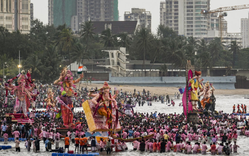 Mumbai: Lakhs of devotees have thronged at Girgaum Chowpatty and other immersion points on Saturday to experience the grand culmination of the Ganesh festival with Ganapati Visarjan on Anant Chaturdashi amid chants of ‘Ganpati Bappa Morya, Pudhchya Varshi Lavkar Ya’ (Come back soon next year).
