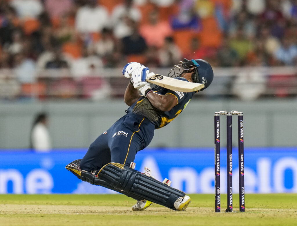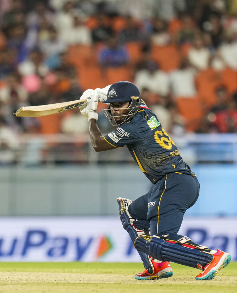 New Chandigarh: Gujarat Titans’ Sherfane Rutherford plays a shot during the Indian Premier League (IPL) 2025 Eliminator cricket match between Mumbai Indians and Gujarat Titans, in New Chandigarh, Friday, May 30, 2025. (PTI Photo/Ravi Choudhary)(PTI05_30_2025_000636B)