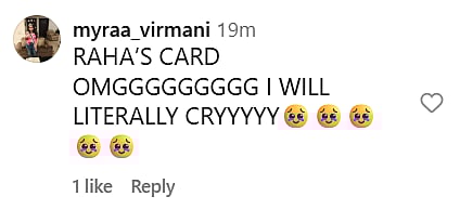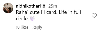 Another Instagram user wrote, “BUNNY with his real life NAINA (sic).” One more netizen commented, “Raha’ cute lil card. Life in full circle (sic).” Check out the comments below…