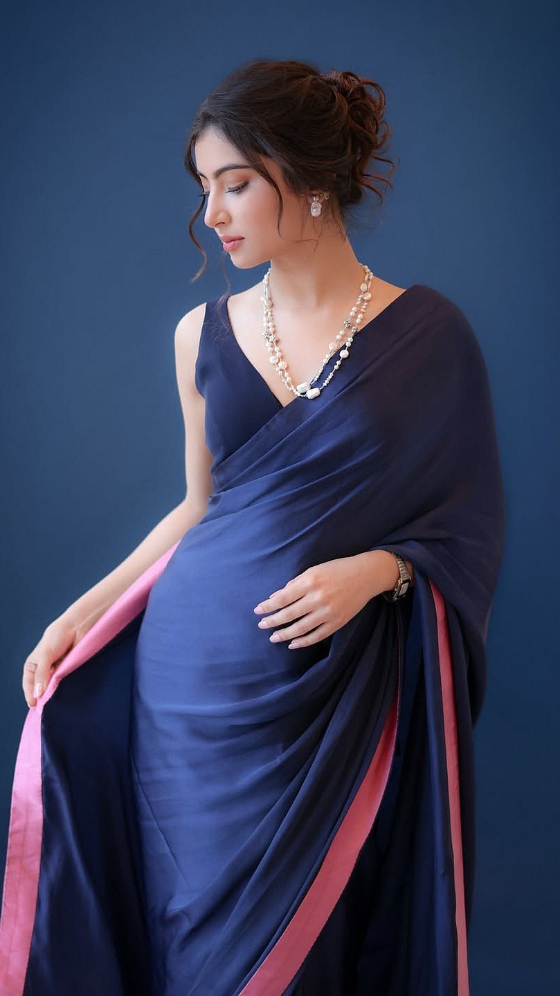 Sara’s look featured an exquisite navy blue saree by the brand Ohfab, who named it Nizam’s Twilight set