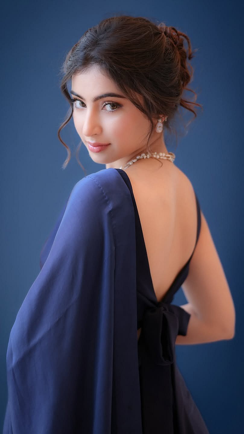 Sara paired her saree with a matching navy blue blouse, boasting a sleeveless pattern, a daring backless design and a plunging neckline