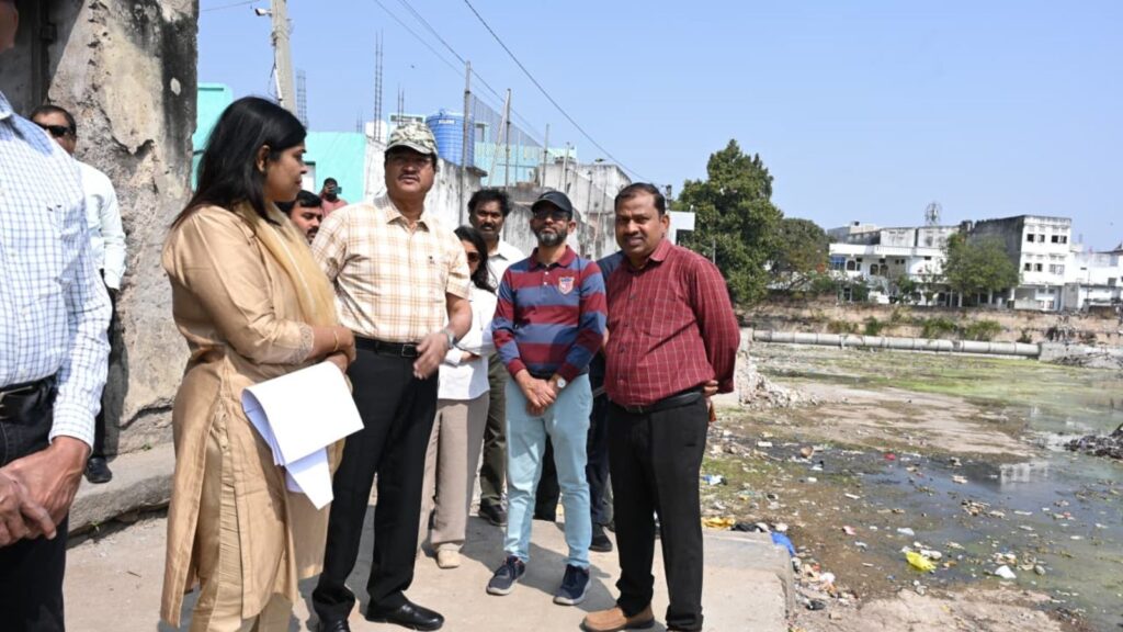 The senior officer was briefed about the water body’s development by officials of Nirmaan, an NGO tasked with taking up the restoration work.