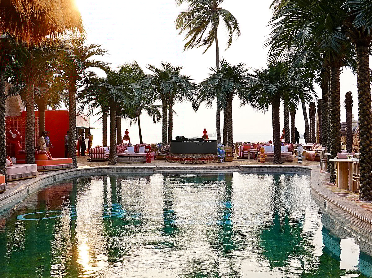 At its heart lies a sprawling swimming pool that leads the club’s visual drama. During the day, it’s about laid-back luxury with families brunching by the water, friends soaking in the sun, curated kids’ activities and wellness-led mornings.