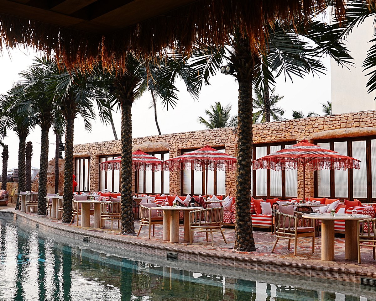Designed by Minal Chopra, the architecture leans into open layouts, airy transitions and uninterrupted sea views. Inspired by Ibiza, Mykonos and Saint-Tropez, the space shifts effortlessly from relaxed daytime lounging to high-energy evenings under the stars.