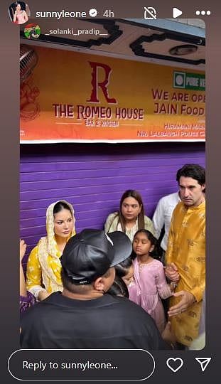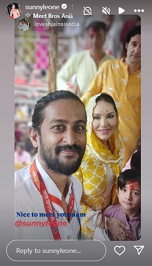 Sunny’s fans were super excited to see her at Lalbaugcha Raja. They are sharing the videos of the actress on their Instagram, and Sunny is resharing them on her Instagram story. Check out the post of the fans below…