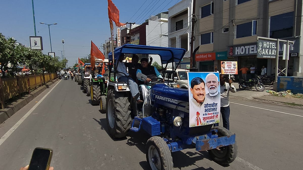 Ujjain (Madhya Pradesh): Farmers in Madhya Pradesh’s Ujjain took out a tractor rally on Sunday to thank Chief Minister Mohan Yadav for announcing ‘Bhavantar compensation’ on kharif soybean crops.