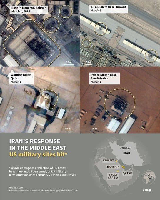 According to a statement carried by the IRNA news agency, targets included the al-Dhafra airbase in the UAE and the Ali al-Salem airbase in Kuwait, where the IRGC claimed missiles and drones struck radar systems, fuel facilities and other installations used by US forces.