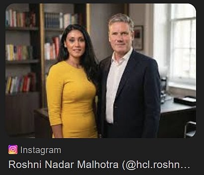 HCL Technologies Chairperson Roshni Nadar Malhotra recently shared a photograph on her Instagram account claiming she had met Delhi Lieutenant Governor Vinai Kumar Saxena. The post was captioned: “Earlier today, I met Delhi LG Vinai Saxena to discuss innovation and how HCL Tech empowers young entrepreneurs and freshers through our committee programs.”