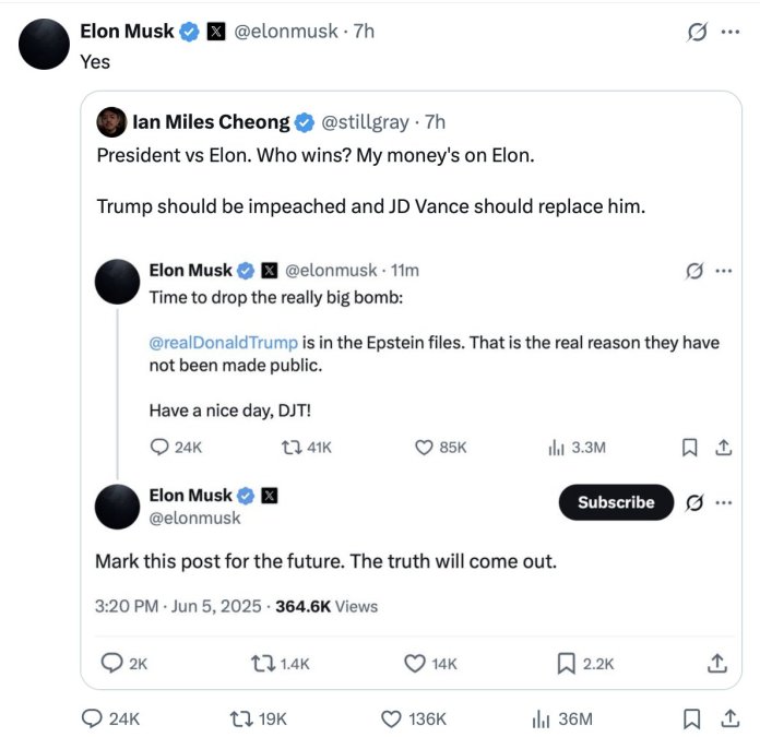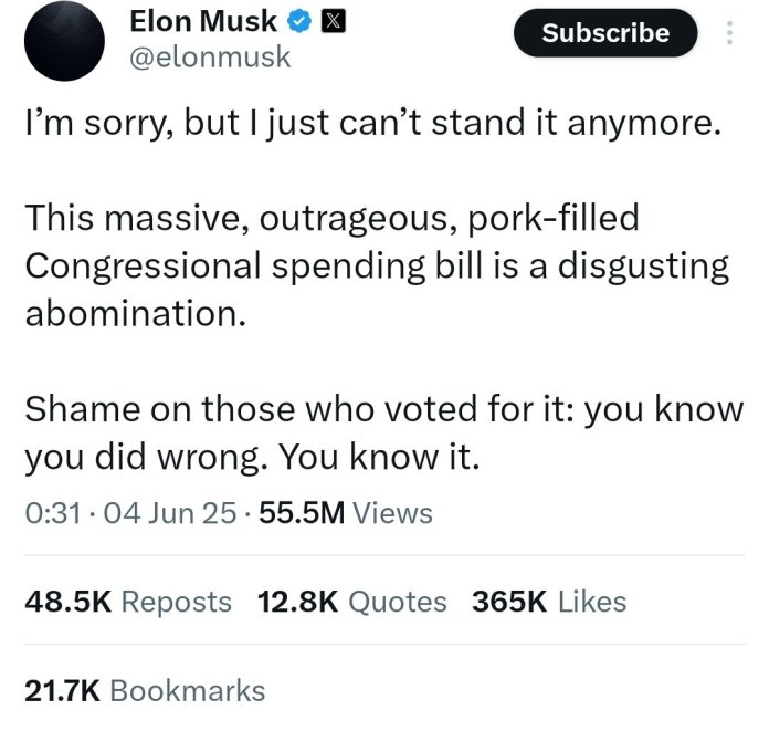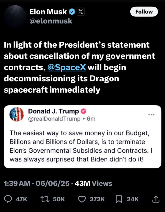 — Elon Musk (@elonmusk) June 5, 2025